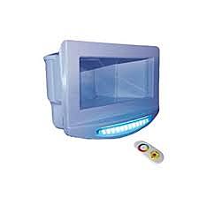 Attach this unique white cover plate to your 12 inch (wide mouth) above ground pool skimmer and instantly add some light to your yard! Each light includes a remote with 25 feet of range and features ultra bright, multicoloured LED lights to shine as bright as possible. Skimmer is sold separately.