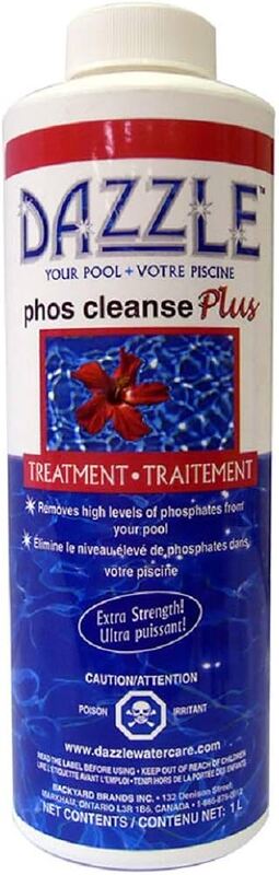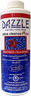 A healthier, more natural way to help control algae. Super concentrated formula removes phosphates from pool water. Use initially to remove high levels of phosphates – levels in excess of 300 ppb. By removing phosphates (fertilizer), you starve algae, allowing approved sanitizers to easily kill them. One week after addition of Dazzle™ Phos Cleanse Plus, commence weekly maintenance applications of Dazzle™ Assure to keep phosphate levels low and water dazzling clear and algae-free.